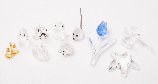 A mixed collection of twenty-two Swarovski glass figures, including Starfish, Flowers and hedgehog etc, all boxed.