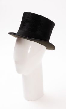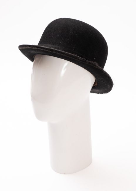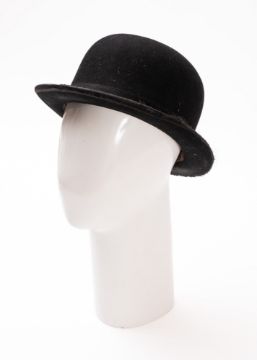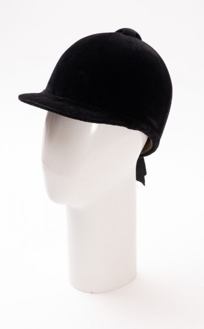 Two 20th Century blue velvet riding hats, maker S Patey, London. Having a green liner and makers mark to the inside, 53cm circumference, together with a Woodrow, London black felt top hat with white leather sweatband 42cm circumference and a Tress & Co London black bowler hat with white leather sweatband, 56cm circumference. (4). PROVENANCE: From the estate of Jethro (Geoffrey Rowe 1948-2021)