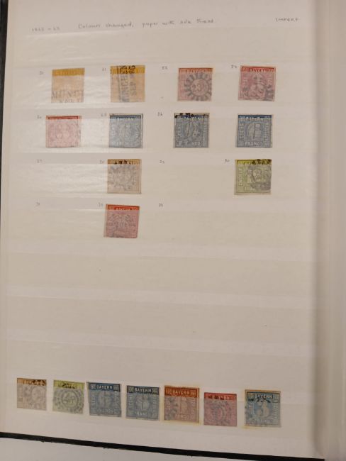 Bavaria and Saar. Collection of German State Bavarian stamps in 32-sided stock-book, from 1849 -1862 imperfs, through to1920 Ludwig perf / imperfs, together with a further stock-book of Saar.