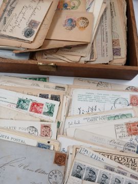 World Postal History. A wooden box full of old covers, postal stationery, and postcards, early to mid, with much of interest and viewing highly recommended.