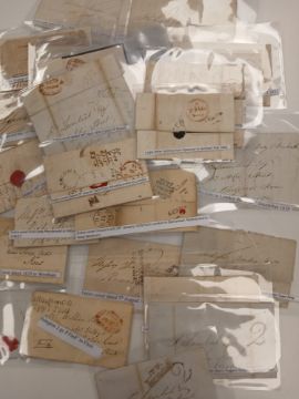 Great Britain. A collection of pre-stamp postal history, with descriptions, in plastic sleeves. Various markings etc. 33 items.