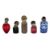 Five silver mounted glass scent bottles, two red examples, one with a blue & clear body, a small green scent bottle and one with a silver mounted body; the largest 3" (7.6cm) long (5)