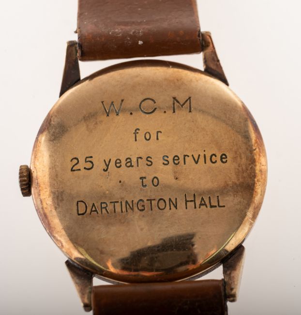 Goldsmiths & Silversmiths Co. Ltd, a gentleman's 1950s gold wristwatch the cream dial having black Arabic numerals, blued-steel dauphine hands, a subsidiary seconds dial and signed Goldsmiths & Silversmiths Co. Ltd., 112 Regent Street, London W.1., the case marked for 9K gold, on a brown leather strap, diameter 33mm, gross weight c.35.27gs.
