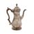 A George III silver coffee pot, of baluster form, with later embossed decoration, a fruit wood scroll handle and on a spreading circular foot, crested, makers mark partially lost in the decoration, London 1764; 9.8" (25.1cm) high; 21.6ozt