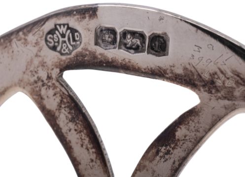 A small mixed lot of silver, to include a toast rack, a tea strainer and an ashtray, mixed makers & dates; the toast rack 4.1" (10.5cm) long; 10ozt (3)