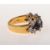 An 18ct sapphire and diamond articulated ring, the front section being articulated and claw set with a row of four circular-cut sapphires, each interspersed with two brilliant-cut diamonds and a trefoil of diamonds to each end, diamonds approx. 0.72 carat total, partial Import mark, 750, 18kt, size approx. L1/2, (evidence of re-sizing), 7.6grams.