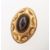 A Victorian Etruscan garnet keepsake brooch, collet set to the concave centre with a marquise-cut garnet cabochon, the mount have raised and rope edge decoration, to verso there is a keepsake compartment with a photograph of a young gentleman in uniform, unmarked yellow metal, metal pin, measuring approx. 4.4cm x 3.0cm, 10.6grams.