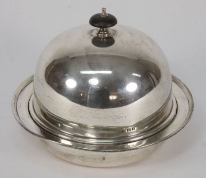 A George V silver muffin dish and cover, maker A B Ltd, Birmingham, 1926: with domed circular lid, lift-out tray on a circular base, 17cm. diameter, 18.17ozs.
