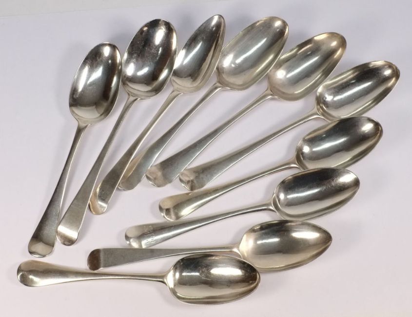 Ten George II and George III Old English table spoons, various dates and makers: all crested or initialled, 20.51 ozs.