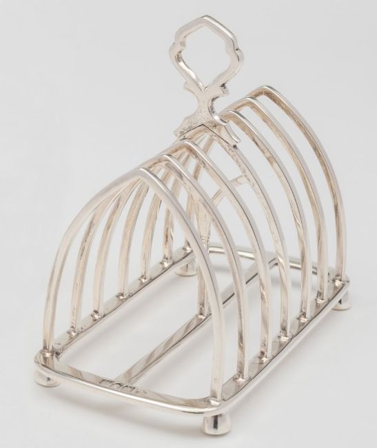 An Edward VII silver six-division toastrack, maker Thomas Bradbury and Sons, London, 1903: the arched cage raised on four peg feet, 14cm long, 8.74oz. (1422)