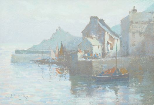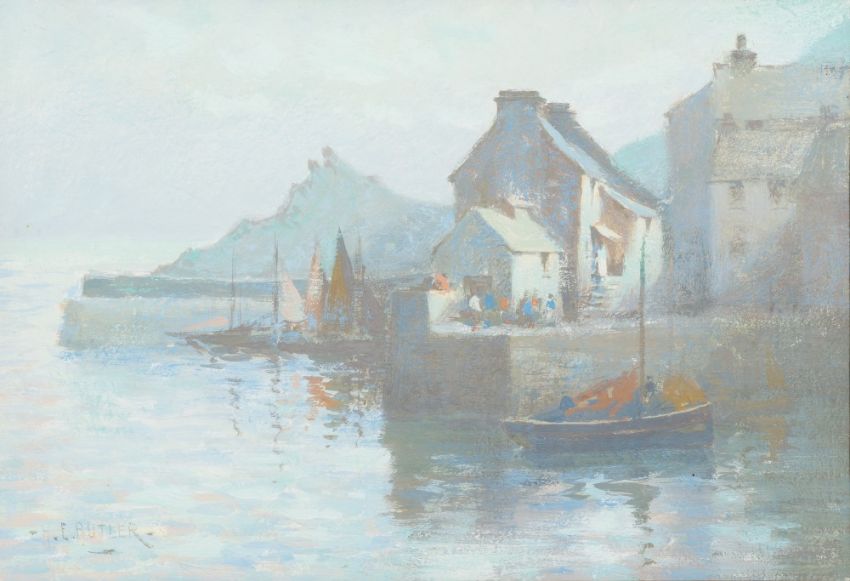 Herbert E. Butler [1861-1931]- Polperro Harbour; The Coast at Polperro; The Old Bridge Polperro; a group of three pastel and mixed media drawings all signed each 18 x 26cm. [3]