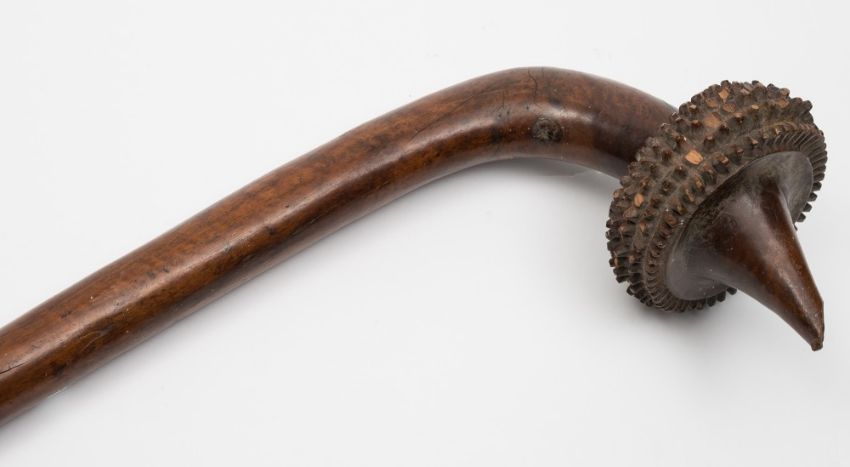 A Fijian Totokia war club: with traditional pineapple-shaped head and tapering shaft, 82cm. long.