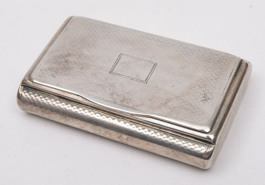 A George III silver snuff box, maker Thomas Phipps & Edward Robinson, London, 1809: of rectangular outline with engine turned decoration and gilded interior, 7.5cm. wide, 2.80ozs.