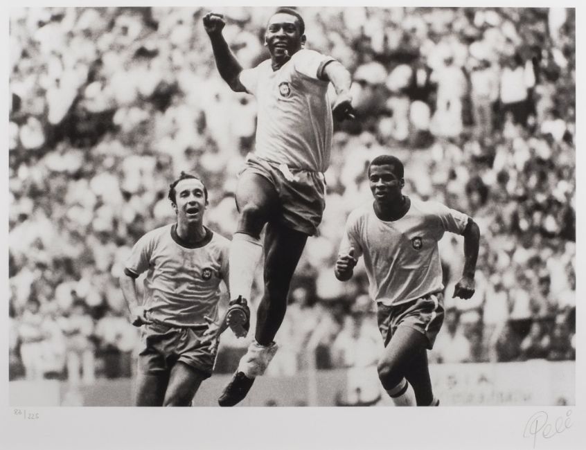 Pele (1940-) A set of eight limited edition signed giclee prints commemorating the 50th Anniversary of Pele winning his first World Cup Winners medal:, 'Pele & Ali' (83/95), 60cm, 51cm, ' Bicycle kick' (83/95), 60cm x 90cm, 'World Cup Final 1970', 'Pele & Moore' (83/225) 46cm x 30cm, 'Goal!', 'Pele & Best', (83/225) 30cm x 42cm, 'Pele', 'World Cup Victory 1970' (83/225) 30cm x 46cm , each with certificate of authenticity to the reverse, published by Washington Green Fine Art 2008, together with brochure (9)