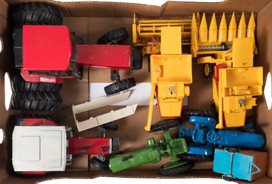 Britains, Ertl and others, various scales of farm tractors and machinery: various assorted makes and all unboxed,