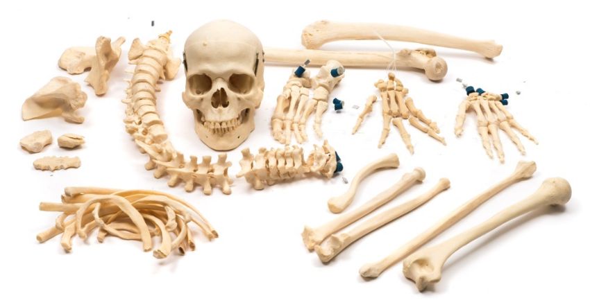 A 19th century human skull together with a later 20th century composition skeleton:, the latter formerly of The Royal College of Surgeons.
