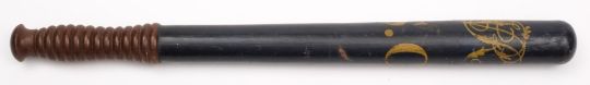 A Victorian painted 'Special Constabulary' truncheon:, with 'VR' cypher over 'SC' in yellow on a dark blue ground, ribbed handle, overstamped 'Besant' above the top of the handle, 47.5cm long.