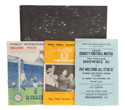 A collection of various football programmes:, including a Pat Welton's All Star XI RAF Association match against a Showbiz XI, listing Sean Connery as a 'talented young Irish film star..', including a 1966 World Cup programme, three 1967 FA cup Final programmes and others.