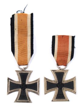 Two WWII Iron Crosses, Second Class:, with ribbon.