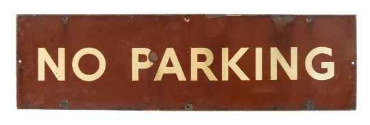 A GWR cream and brown enamel 'No Parking' sign:, 30cm x 107cm.