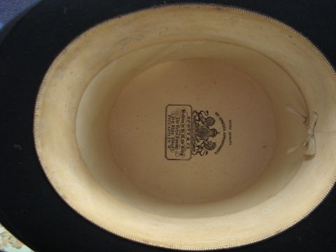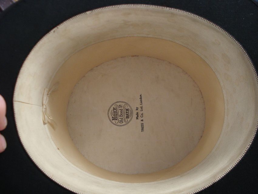 Two black silk top hats, an opera hat and a bowler hat:, together with a child's cream and lace dress with lace and gel wings, a lady's white silk jacket and off cuts.