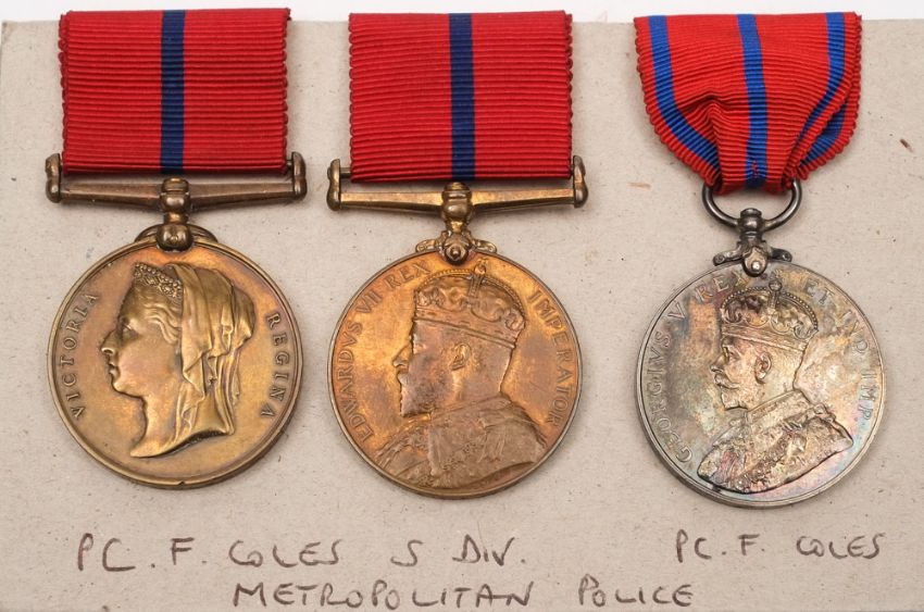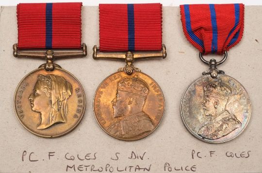 A late 19th/early 20th century Metropolitan Police group of three Jubilee and Coronation medals to Police Constable F Coles:, 1897 Coronation Medal, Edward VII Coronation Medal and George V Coronation Medal.