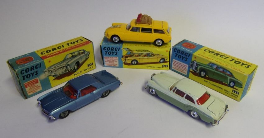 Corgi No 215 Bentley Continental Sports Saloon: No 245 Buick Riviera and No 436 Citroen Safari ID19, all in original boxes, (3).