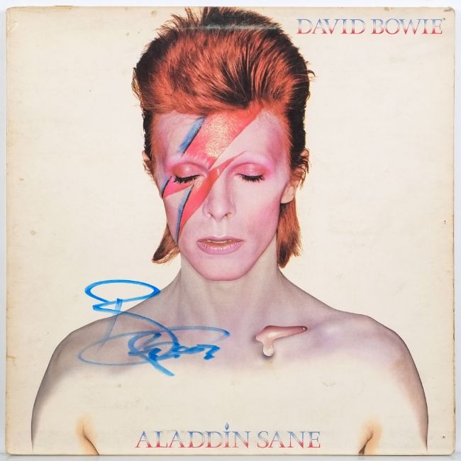 WITHDRAWN David Bowie 'Aladdin Sane' signed album cover with note of provenance:, signature obtained in Manchester in 2003