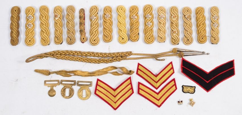 A collection of military epaulettes:, insignia etc.
