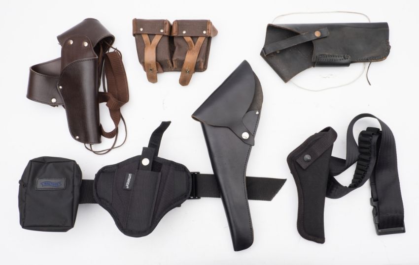 A Smith & Wesson gun belt and holster together with a group of various rifle cases etc:.