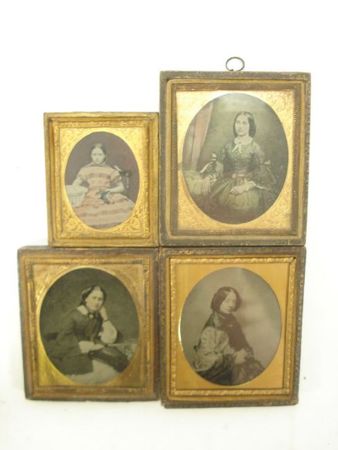 A group of three hand tinted 1/4 plate ambrotype portraits of women:, together with one other hand tinted ambrotype of a seated child, photographers unknown (4)