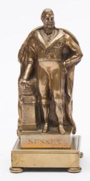A gilt brass figure of the Duke of Sussex in robes, (brother to King George) 17cm high.:(2)