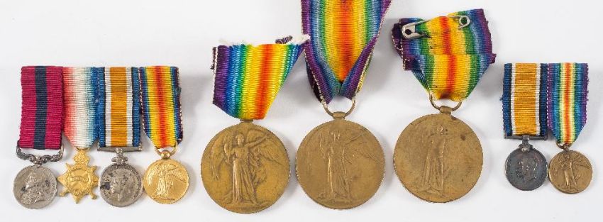 A WWI miniature group of four, another miniature pair and three Victory medals:,'J14003 T E L Griffiths LSRN''213 Bmbr A J Astle RA''10838 Pte A Taylor Notts & Derby R'