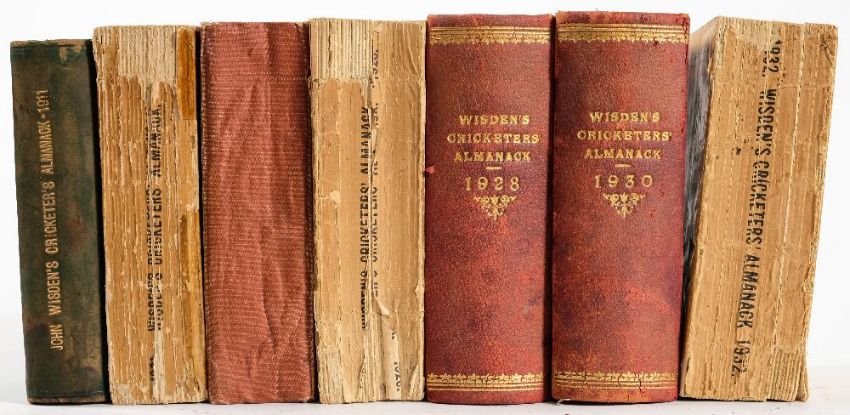 Wisdens, seven volumes 1911, 1921, 1922, 1923, 1928, 1930 and 1932:, (7)