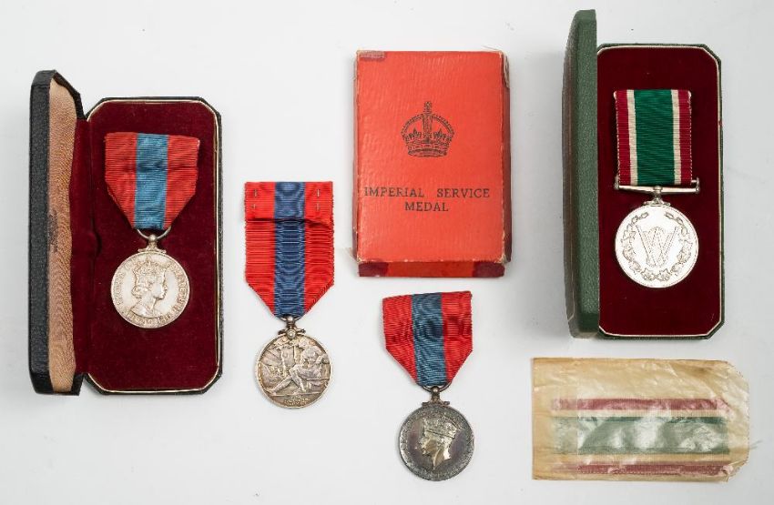 A WWI miniature group of seven:, 1914-15 Star, War Medal, Victory Medal, 1949-45 Star, Africa Star GRVI Coronation Medal and US Medal of Freedom, together with an unnamed 1915-15 Star a WWI pair '45899 Pte R E G Hutchings R Berks R' and A War medal 'Lieut H N Hollis'