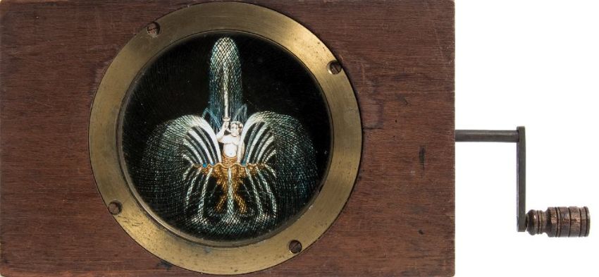 A 19th century three framed rackwork magic lantern slide of a water fountain by WE & F Newton, London:, stamped as per title to mahogany frame, 10 x 16.5cm ( fountain panel cracked)