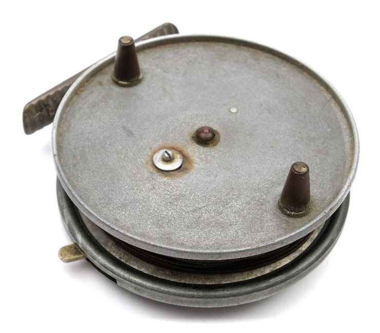 A Hardy 4 inch 'Hardy- Wallis' reel:, signed as per title and initialed 'JL', lever release and double conical handles.