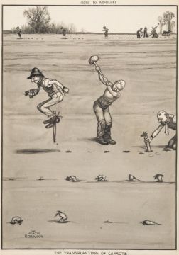 William Heath Robinson [1872-1944]-How to Agricult. The Transplanting of Carrots,:-signed bottom leftinscribed with title in the top and bottom marginspen, ink and watercolour drawing, 33 x 23cm.*Note Illustrated. The London Magazine, August 1908.*Note Exhibited. Chris Beetles Ltd, St James's, London, March 1987.
