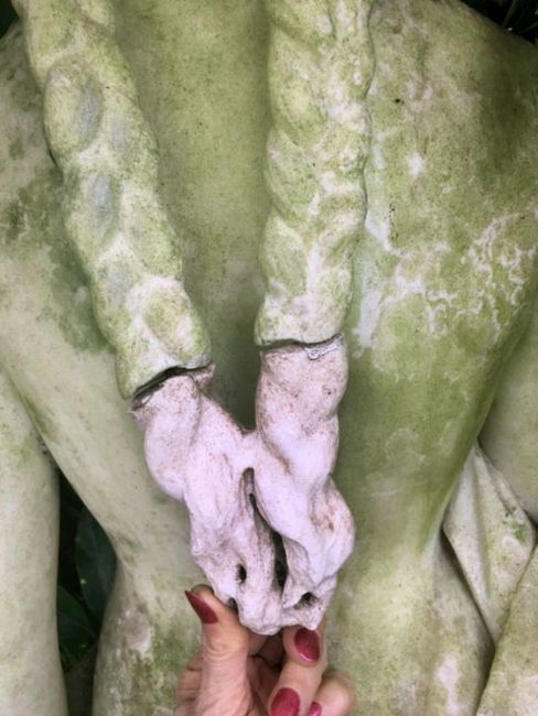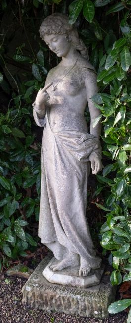 A 19th Century carved white marble standing female figure: the semi-draped beauty looking downwards and with her hair in plaits, 158cm (5ft 2in) high.