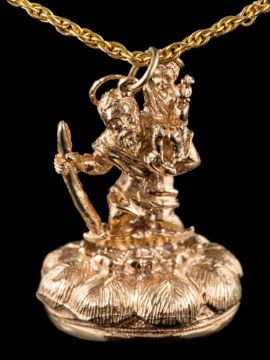A 9ct gold and black onyx 'St Christopher' seal pendant: approximately 34mm total length, 18gms gross weight, together with chain.