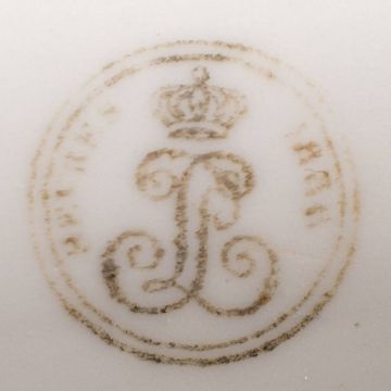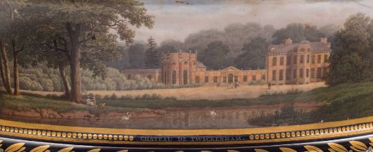 A large Sèvres [Louis-Philippe] pedestal vase, Vase 'Cratère': the frieze finely painted by Poupart with two named views 'Château de Tuileries' and 'Château de Twickenham' on a platinum and gilt decorated cobalt blue ground, on integral gilt-bronze stand, the panels signed A.Poupart for Achille Poupart and dated 1836, black stencilled crowned L.P.mark dated 1836, 32cm high, 39cm diameter [gilt-bronze handles lacking, loss to top of pedestal, long and short crack to bowl].*Notes In the early 19th century, the Château de Twickenham, known as Orleans House and the Octagon, was the residence of Louis-Philippe, Duc d'Orléans [King of the French from 1830-1848]. Two years after his death in 1850, it was purchased by his fifth son Henri, Duc d'Aumale and remained in the family until 1877. Apart from the Octagon and some surrounding buildings, the house was demolished in 1926.*Notes Literature 'The Sèvres Porcelain Manufactory-Alexandre Brongniart and the Triumph of Art and Industry, 1800-1847'. Page 287/90..."A first Crater Vase...blue ground views of the château des Tuileries and Wickenham [sic], slightly cracked, entered the sales inventory on April 30, 1836 and was delivered to the Grand Trianon on April 22, 1837 with production expenses of 1,043.75 francs; sale price of 1,000 francs. A second example, unflawed but otherwise identical, entered the sales inventory on September 10, 1836 and was "delivered to Her Majesty the Queen as a gift for M.Lelong the owner of Twickenham" on the following October 3. A third example entered the sales inventory on May 18, 1838 and the following July was delivered on Louis-Philippe's orders to his sister, Madame Adélaïde. Yet another example was entered on February 8, 1848; it may well correspond to the present design. Apparently the Orleans family had fond memories of the English country house where they had spent the last months of their long exile during the Napoleonic years".