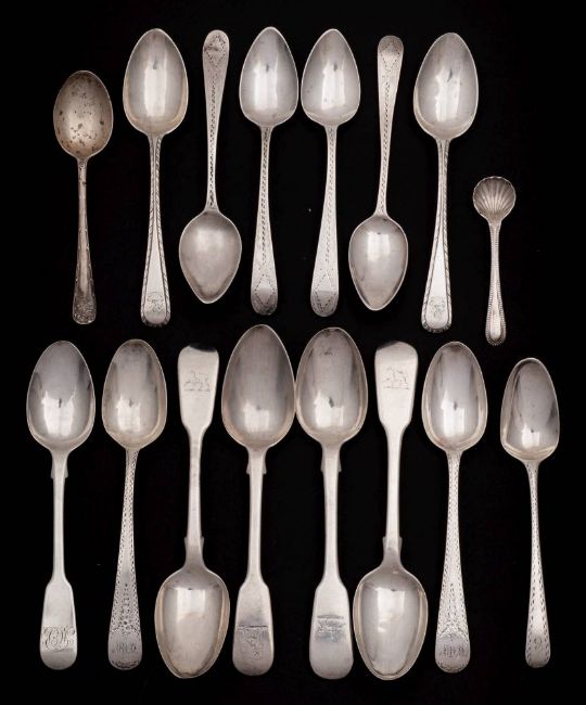 A collection of assorted George III and later silver teaspoons, various makers and dates: most crested or initialled, total weight of silver 247gms, 7.94ozs.