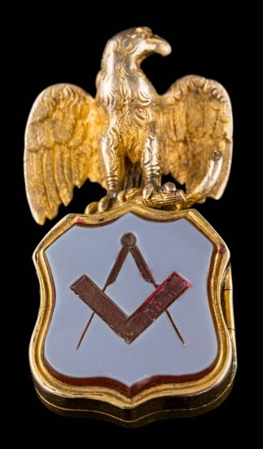 A Masonic eagle motif mounted pendant locket: approximately 45mm overall, 18gms gross weight.