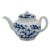 An early Worcester blue and white teapot and cover: of globular form, the cover with mushroom shaped knop, painted in the 'Bamboo Root' pattern with bamboo, rockwork and a large peony spray, two workman's marks, circa 1755, 11.5cm. [restoration to rim of cover, tiny chip to tip of knop].