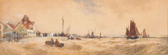 Thomas Bush Hardy [1842-1897]- Landing the Catch, Etageres,:-signed, watercolour, 24 x 82cm.