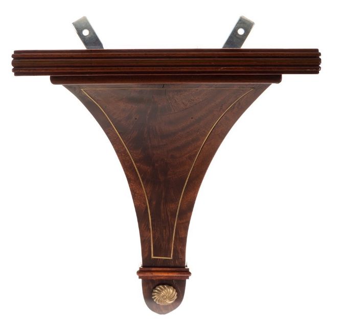 William Cribb, Southampton Row, London; a Regency mahogany bracket clock: the eight-day duration five-pillar double-fusee movement striking the hours on a bell, the eight-inch round convex dial having black Roman numerals, blued-steel moon hands and signed Wm. Cribb, Southampton Row, London, the mahogany case having inset brass-bound panels to the front, canted corners with brass inlaid decoration, fishscale frets to the sides with decorative brass cornucopia handles above, the architectural pediment surmounted by a cast-brass acorn finial, all standing on brass ball feet, with a later matching bracket, height 48cm.*Biography William Cribb was a well-known chronometer maker first recorded as working in Coventry as a pupil to the influential watchmaker Thomas Hewitt before moving to 17 & 30, Southampton Row, Russell Square, London from 1816 until 1822, then 58, Theobalds Road and finally 146 Southampton Row until his death in 1876 having been a maker to the Admiralty.
