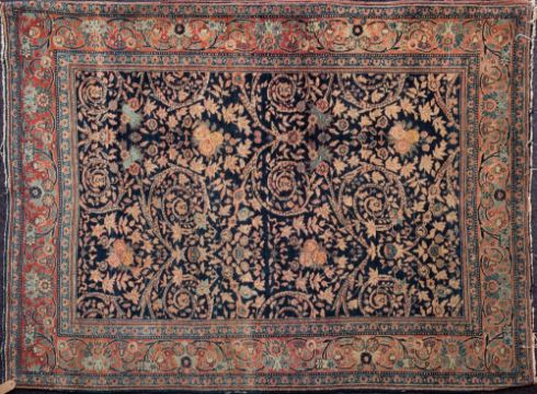 A Hamadan Rug:, the indigo field with an all over design of floral bunches and scrolling floral foliate designs, enclosed by a main rose floral foliate meander border, 180cm x 133cm.