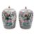 A pair of Chinese famille rose vases and covers for the Straits market: of oviform with lotus bud knops, painted in bright enamels with cockerels and moths amongst peonies, peaches and rockwork within ruyi, lappet and stylised lotus petal borders, circa 1900, 31cm [chip to each cover].
