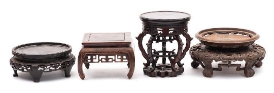 A group of four large Chinese carved hardwood and other stands: 18-26cm wide [4].