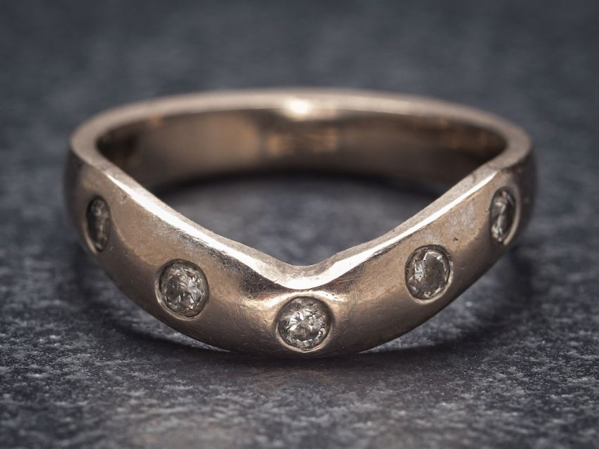 An 18ct white gold and diamond five-stone band: approximately 3.5gms gross weight, ring size L.
